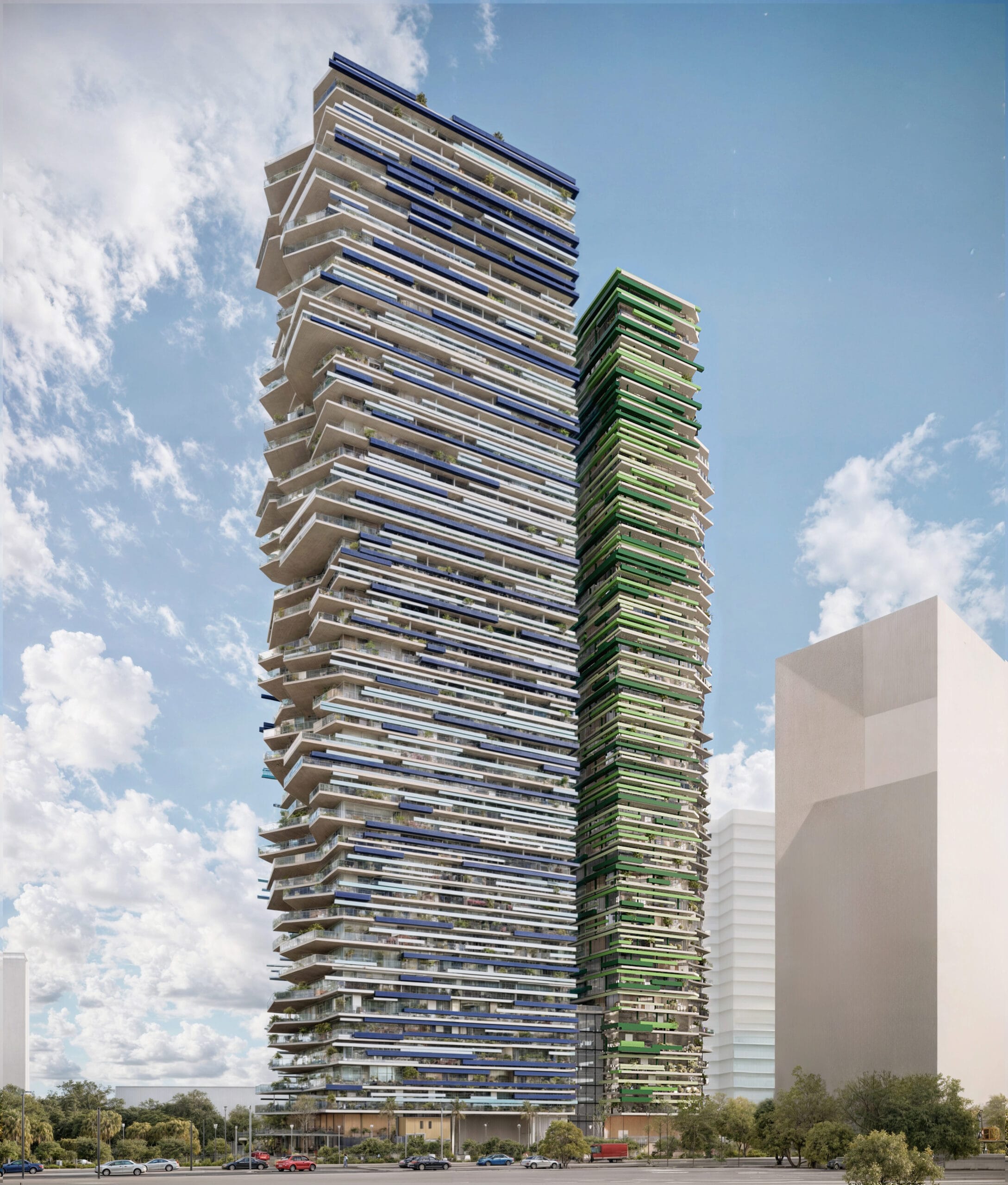 Progeen shpk proudly presents an ambitious new project: two iconic towers, 44 and 41 stories high, strategically positioned in the heart of Tirana’s New Boulevard—an area rapidly transforming into the city’s most sought-after and dynamic destination.